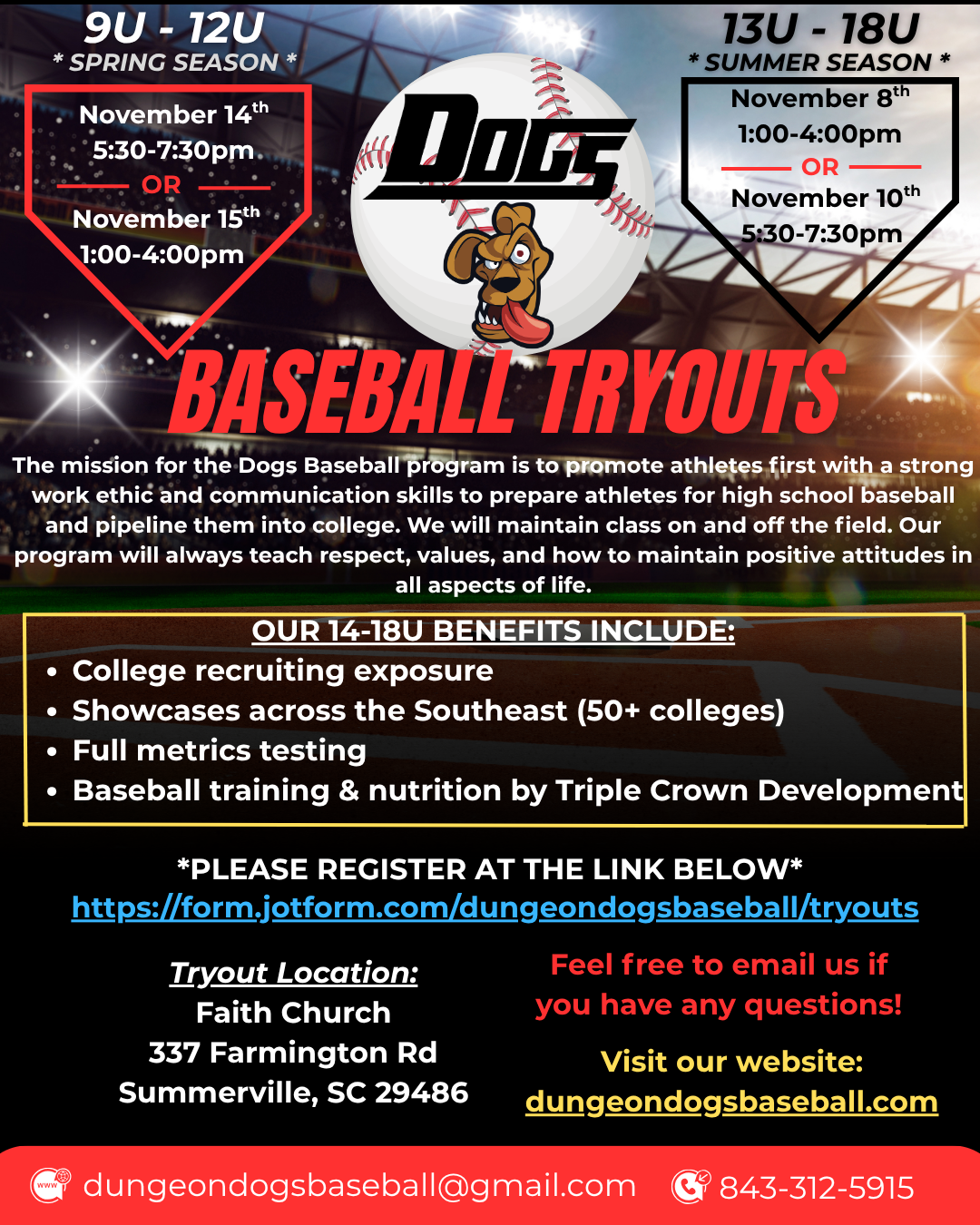 The mission for the Dogs Baseball program is to promote athletes first with a strong work ethic and communication skills to pipeline athletes into college. We will maintain class on and off the field. Our program will always teach respect, values, and how to maintain positive attitudes in all aspects of life.